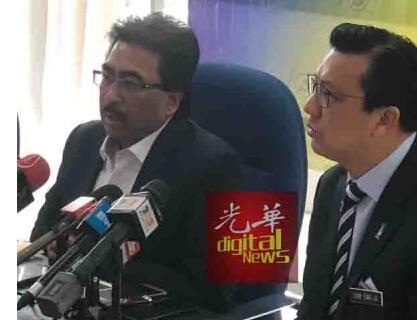 佐哈里(左)与廖中莱一同出席记者会,向媒体发表谈话。